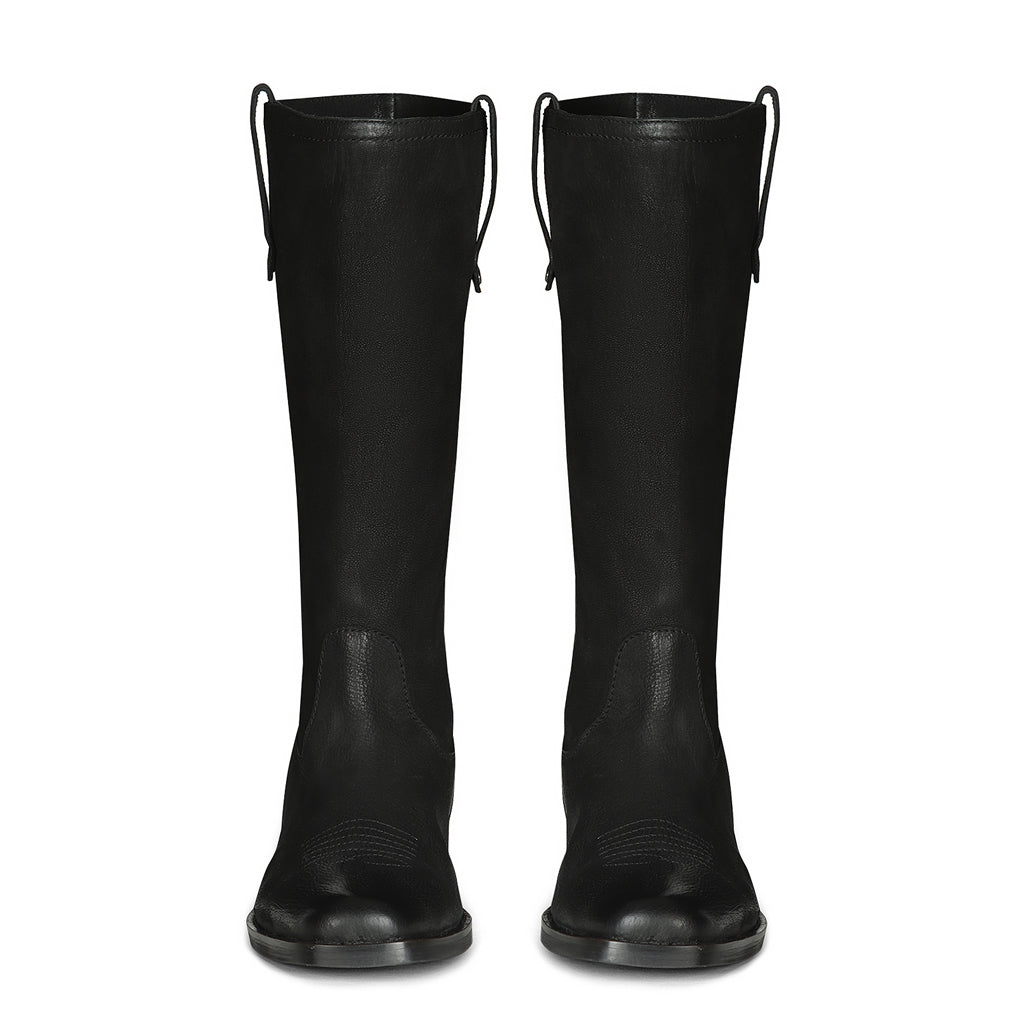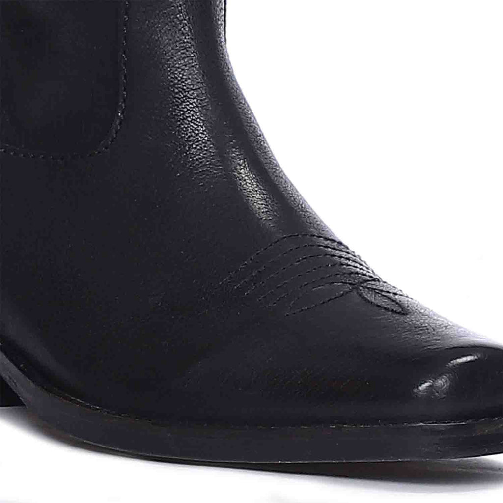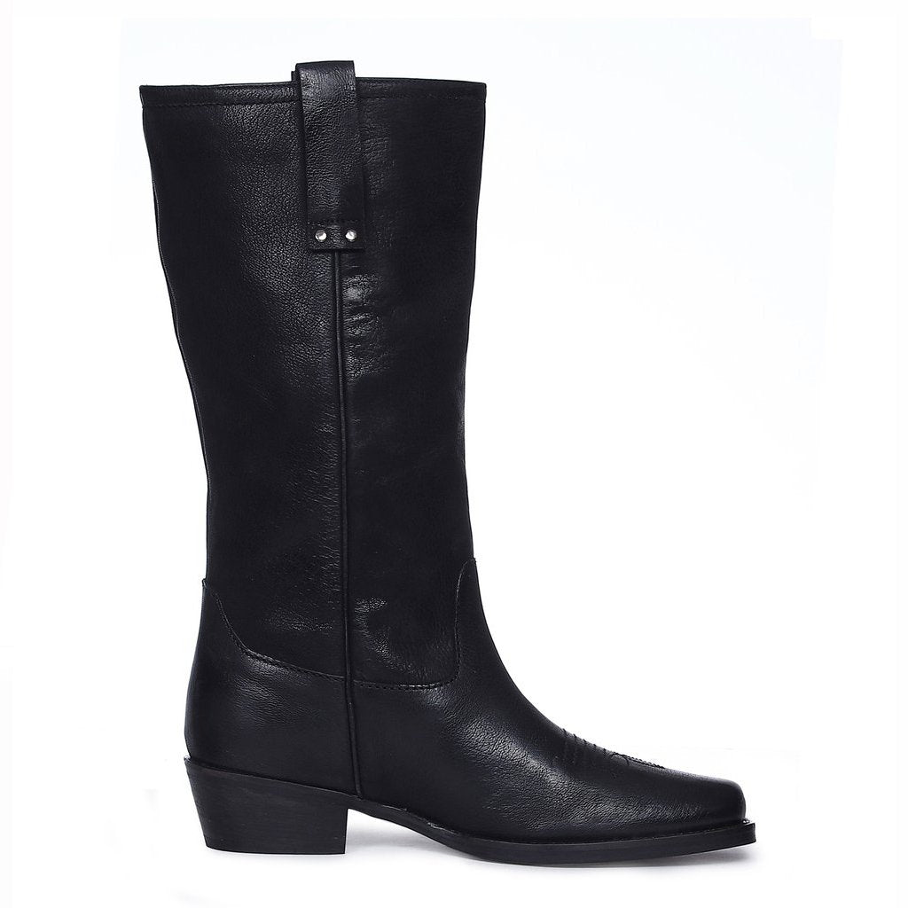 A pair of Saint Valery black leather handcrafted calf boot that comes with a breathable leather shaft for superior comfort and irresistible frame. Making your walk about town a fashionably easy one.