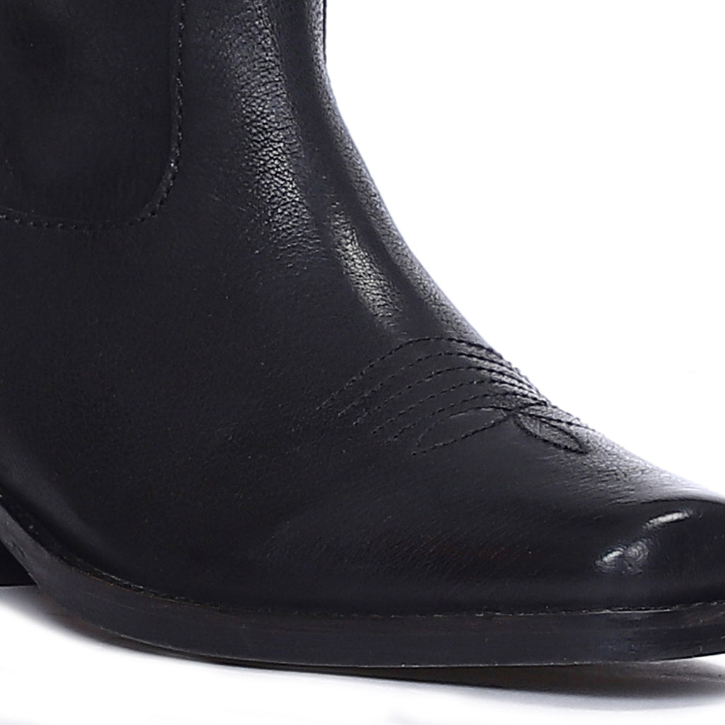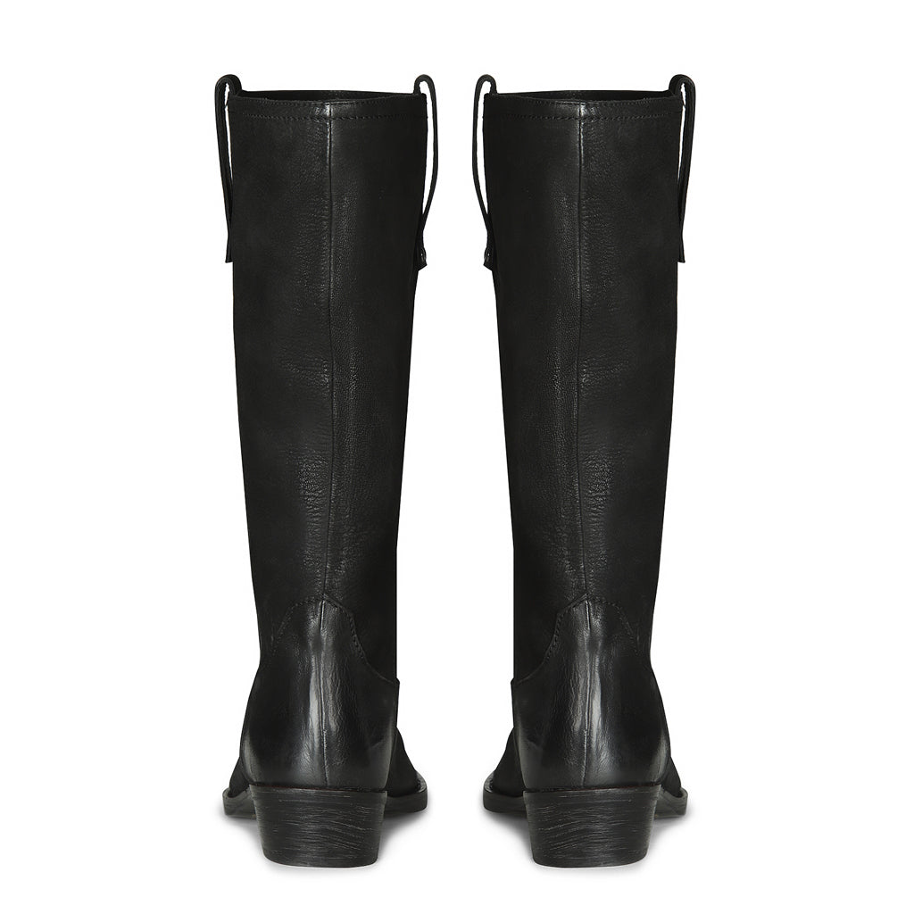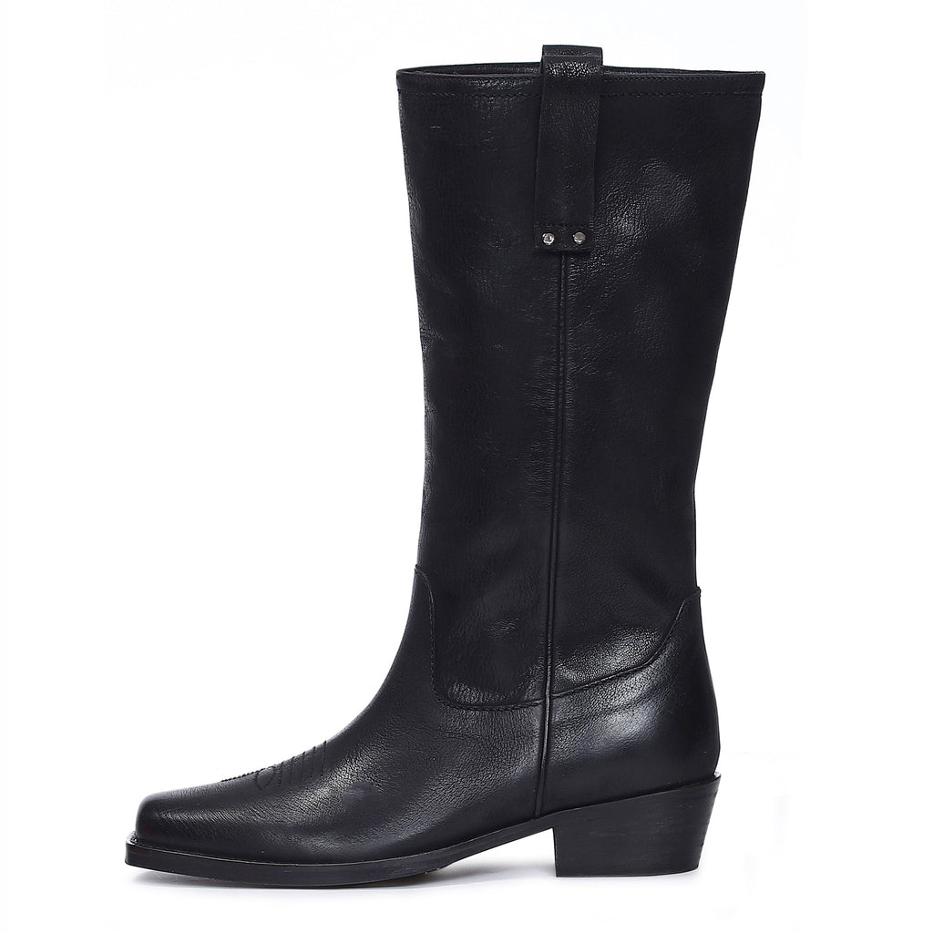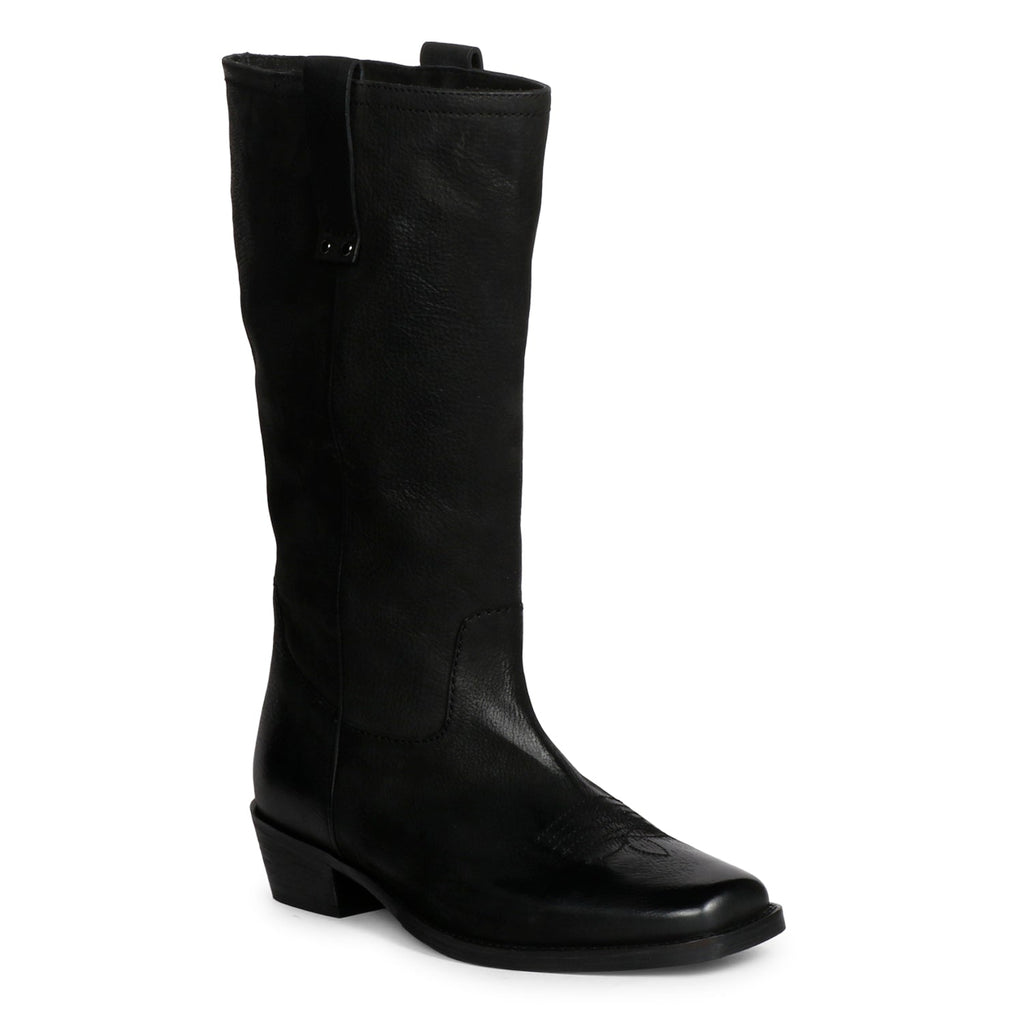 A pair of Saint Valery black leather handcrafted calf boot that comes with a breathable leather shaft for superior comfort and irresistible frame. Making your walk about town a fashionably easy one.