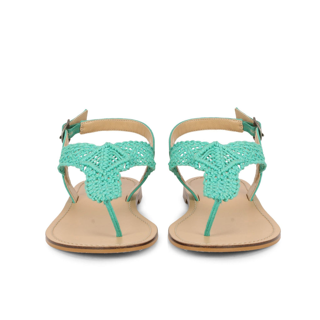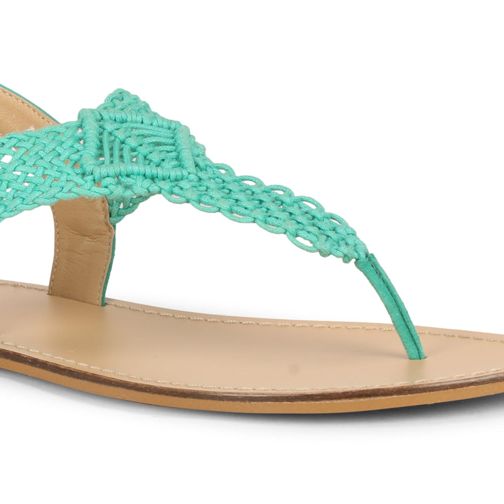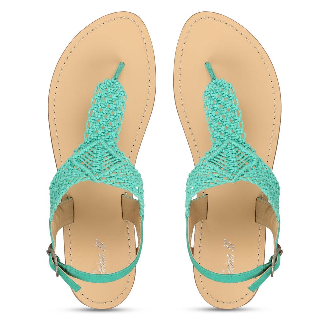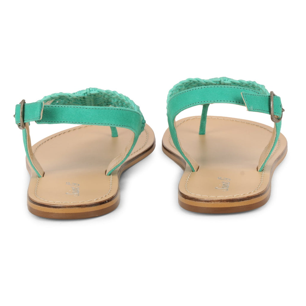 Elevate your everyday style with the jade leather handcrafted flat sandals from Saint G. Complete with jade color leather woven straps, Its secured with buckle fastening strap. Made using quality materials and finished with trending details, Add a modern touch to your summertime footwear with the Saint G Leather Flats.