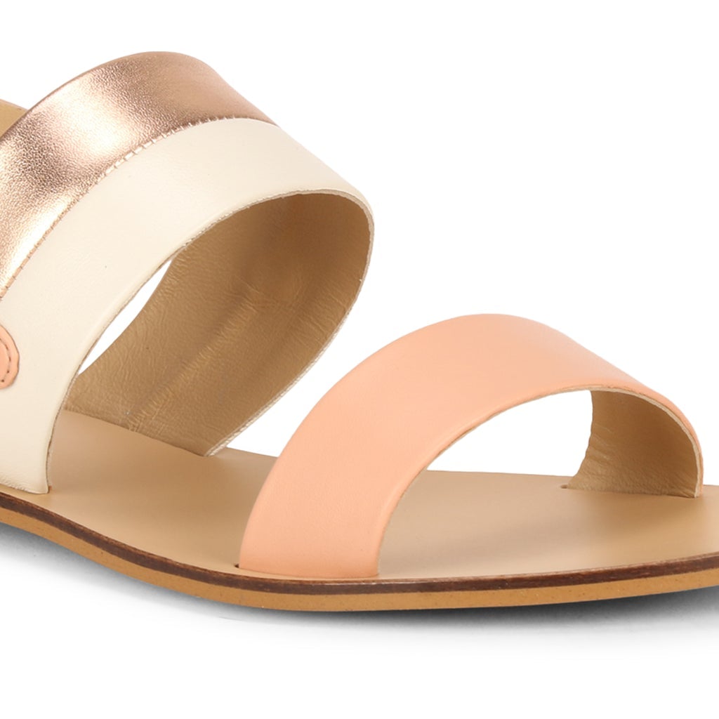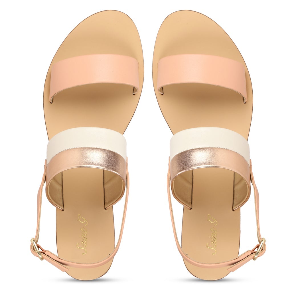 Saint Yina Rose Gold Double Straps Leather Flats