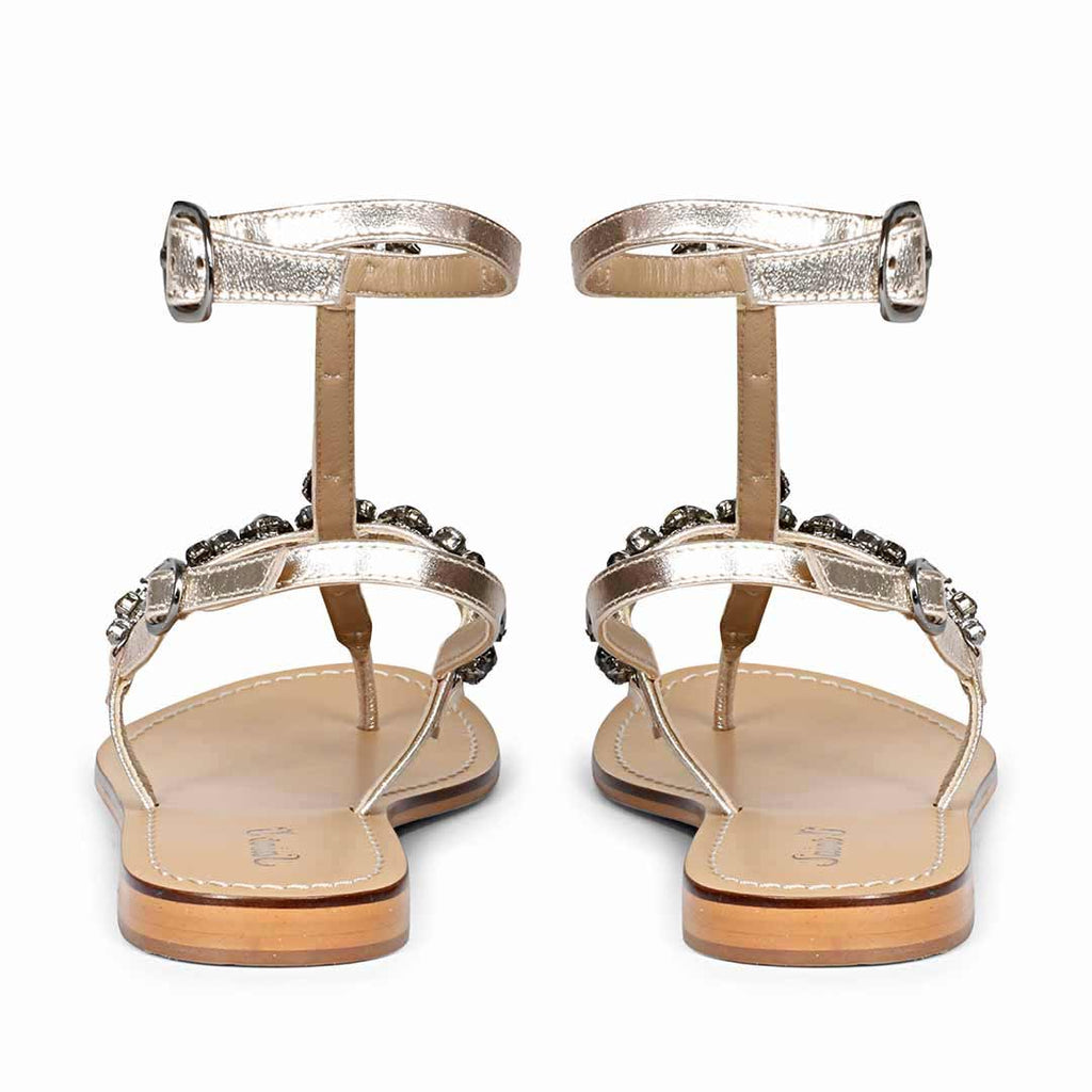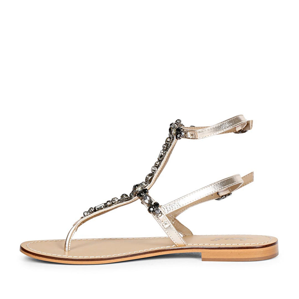 Saint Zuri Black Stone Embellished Platin Leather Flat Sandals